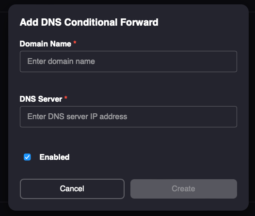 If you click the Add link, ControlOne will prompt you do specify a domain name and DNS server that will receive the forward.