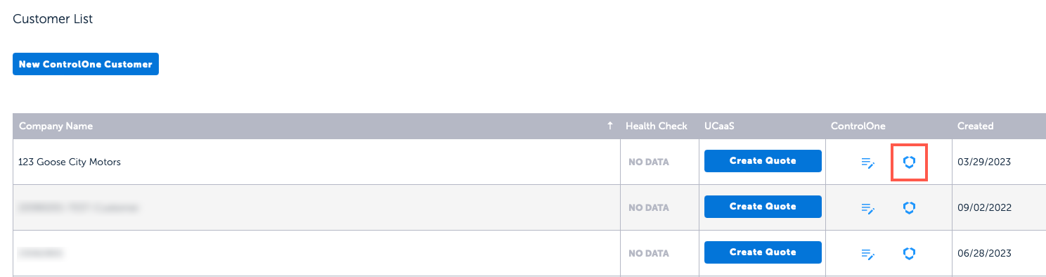 3. Find your customer in the list, then click the ControlOne icon to enter the Portal.