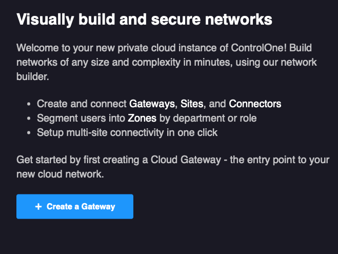 2. Click the Create a Gateway button in the middle of the screen.