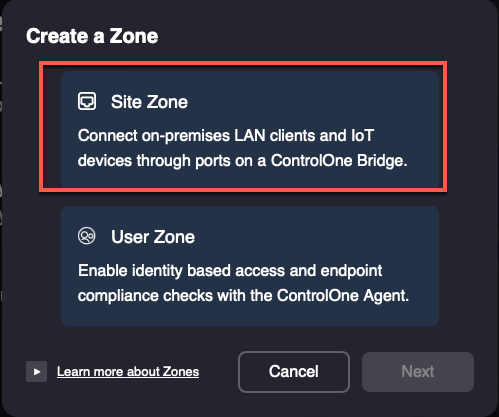 2. select Site Zone, then click the Next button.