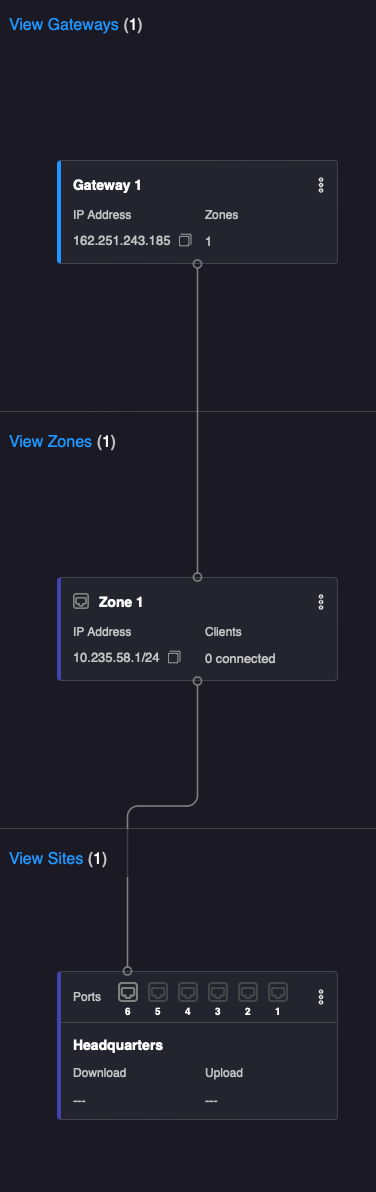 2. If there is not already a connection shown between the zone and the gateway, hover your cursor over the gateway, then select the Port 6 graphic, click the blue circle when it appears and select your zone.