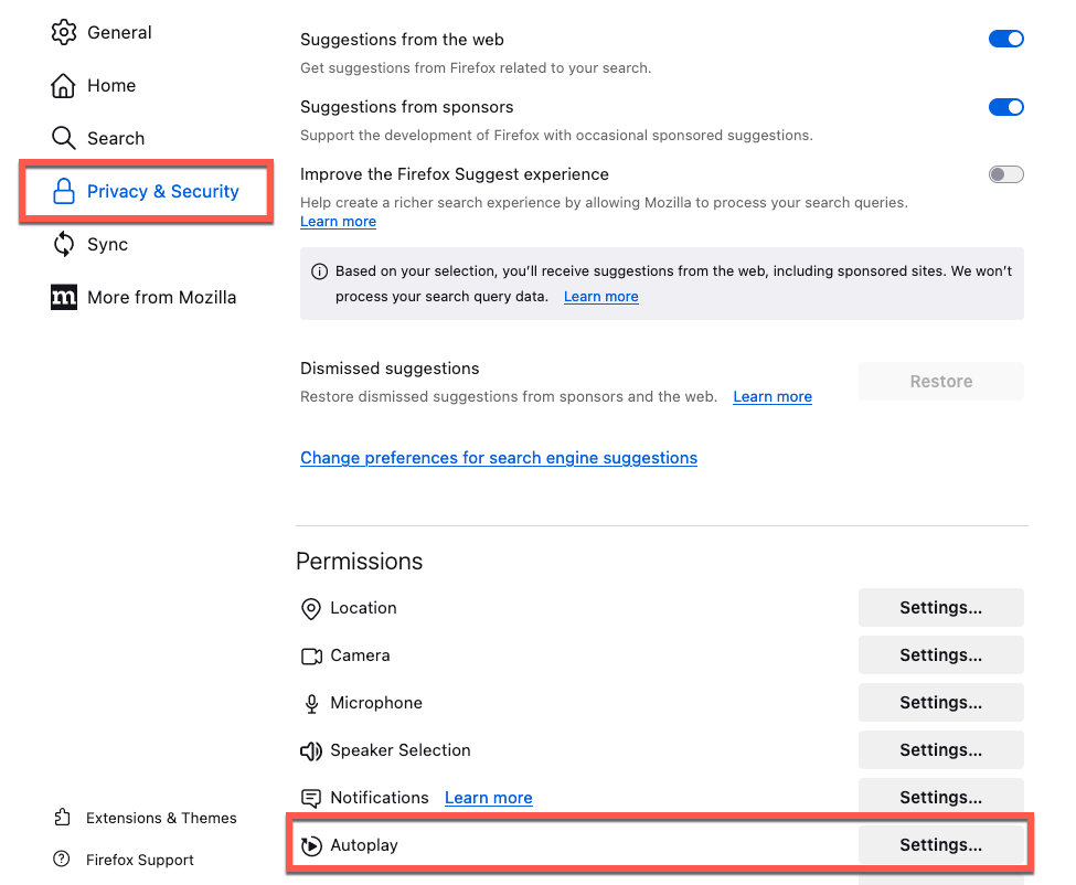 2, Click the Privacy link, then scroll down to Autoplay and click settings.