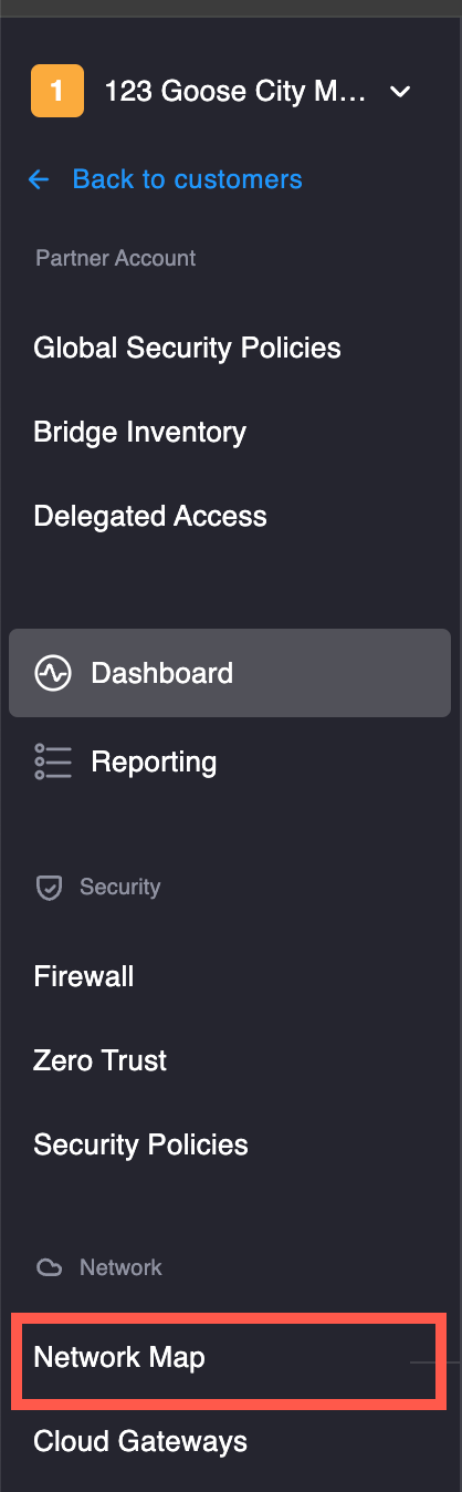 In the ControlOne Portal, click Network Map in the left-hand Navigation menu.