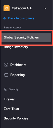 In the left-hand Navigation menu, click Global Security Policies.