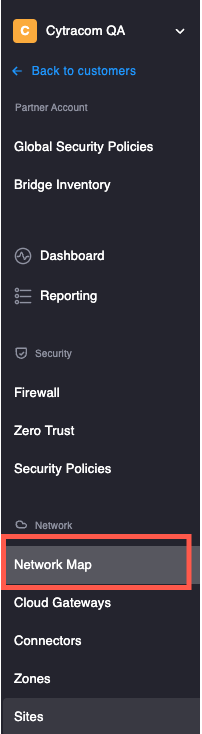 1. In the ControlOne Portal, click Network Map in the left-hand Navigation menu.