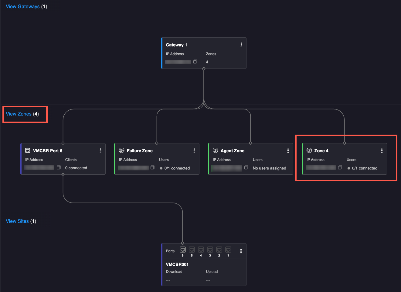 2. Click the zone receiving the new Global Policy to open configuration options.