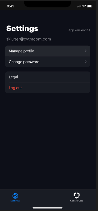- Change Password: Tap this option to change your ControlOne password.
