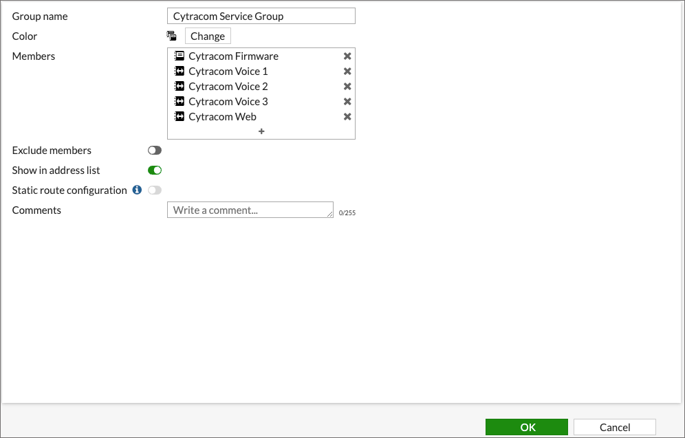 • Members: Cytracom voice 1, Cytracom Voice 2, Cytracom Voice 3, Cytracom Web, and Cytracom Firmware.