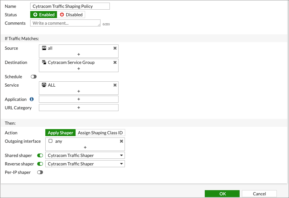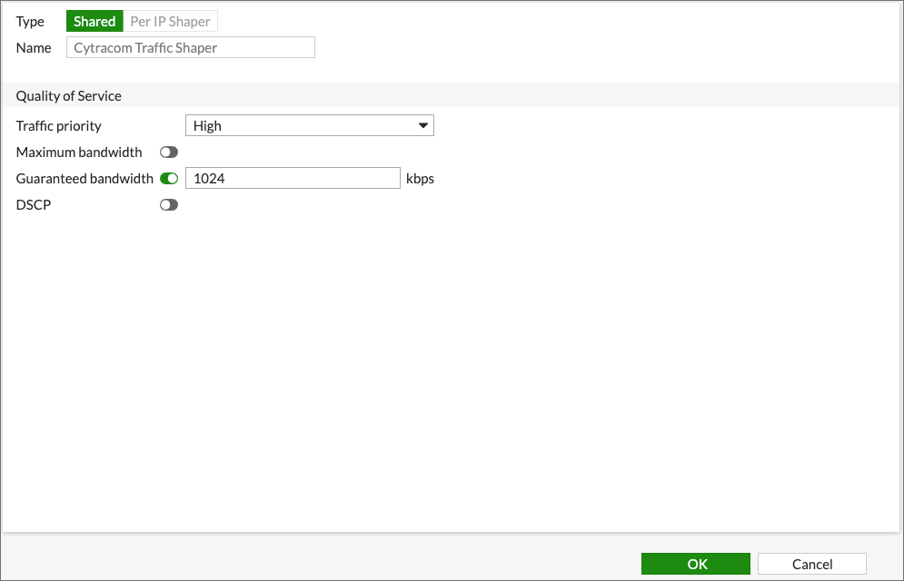 • Shared Shaper: Enabled (Select Cytracom Traffic Shaper)