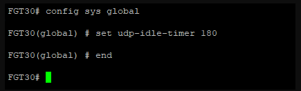 2. Using either Putty or the built-in Command Line to set the UDP Timeout to the desired value for SIP: